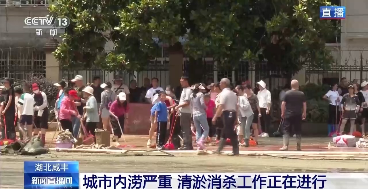 据了解,截止到今天早上6时,咸丰县党员干部等6000余人,对县城开展清淤、排渍等工作。城区69个较严重受灾点已清理完成56个。